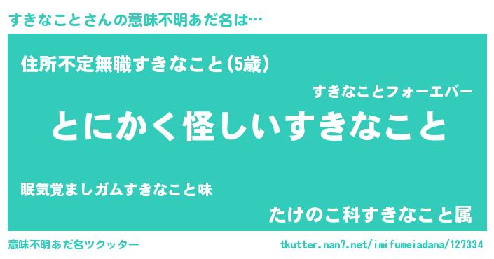 | 男性向けラノベタイトル風あだ名 | 『すきなことの嫁は女の子じゃないと思った?』 |
