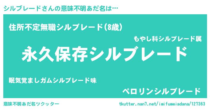 | 男性向けラノベタイトル風あだ名 | 『シルブレードという概念が存在しない退屈な世界 』 |
