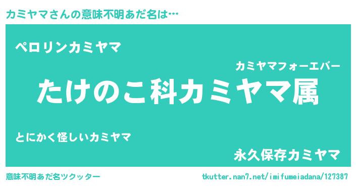 | 男性向けラノベタイトル風あだ名 | 『転生したらカミヤマだった件』 |