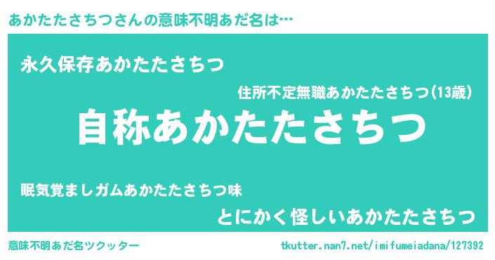 | 女子向けラノベタイトル風あだ名 | 『あかたたさちつなんてお断りですっ。』 |