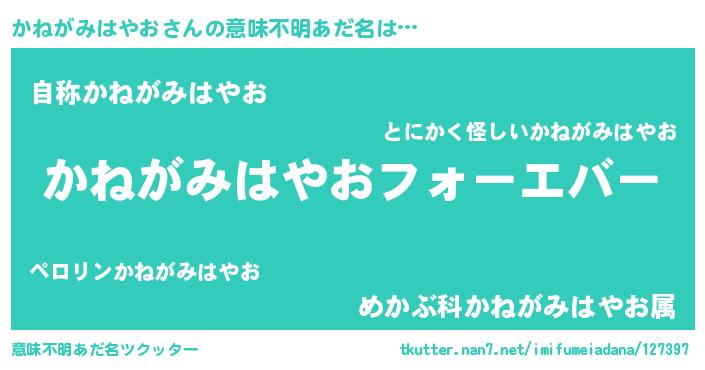 | 欧米人風あだ名 | 『かねがみはやおクリステル』 |