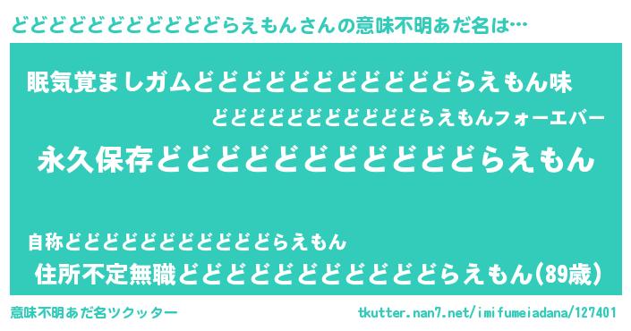 | 女子向けラノベタイトル風あだ名 | 『異世界でカフェどどどどどどどどどどどらえもんを開店しました。』 |