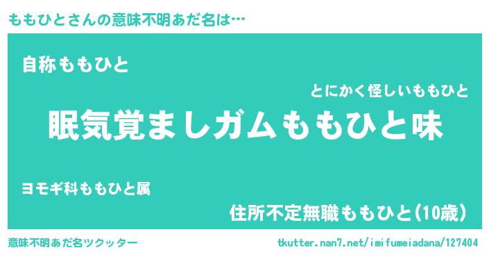 | 男性向けラノベタイトル風あだ名 | 『ノーゲーム・ノーモモヒト』 |