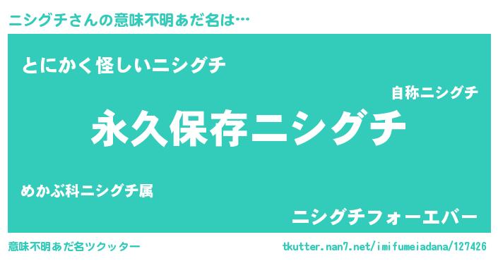 | 男性向けラノベタイトル風あだ名 | 『ニシグチという概念が存在しない退屈な世界 』 |