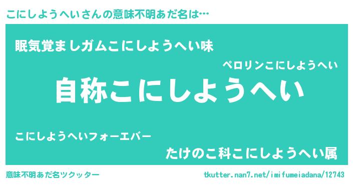 | 欧米人風あだ名 | 『ケンブリッジこにしようへい』 |