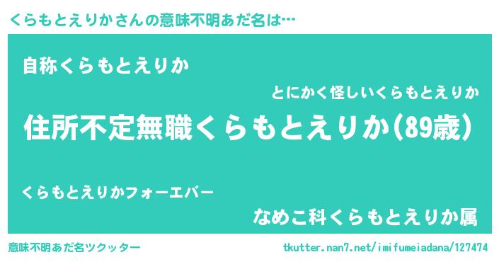 | 伝説のあだ名 | 『孤高の遊び人くらもとえりか』 |