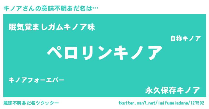 | ヘコむあだ名 | 『キノにゅー』『キノア(笑)』 |