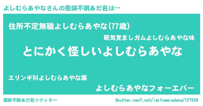 | ポケモン風あだ名 | 『メロヨッシ』『ヒヨシムラアヤナ』 |
