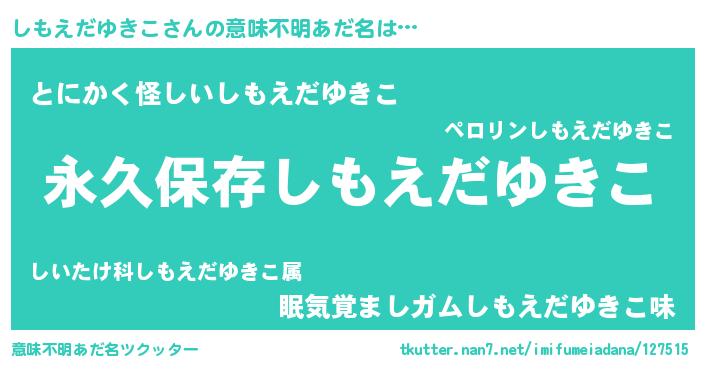 | ポケモン風あだ名 | 『ゼニシモ』『ヒシモエダユキコ』 |
