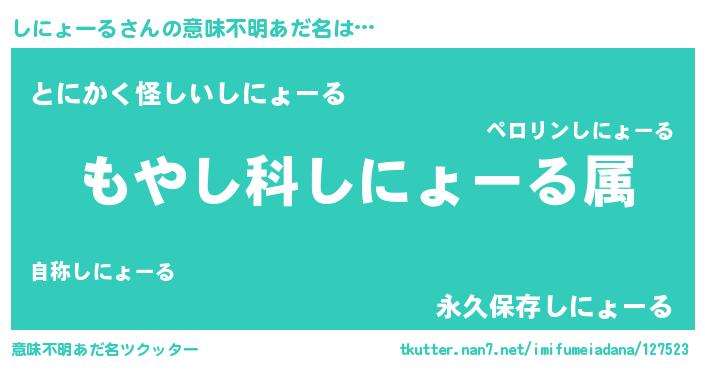 | 男性向けラノベタイトル風あだ名 | 『転生したらしにょーるだった件』 |
