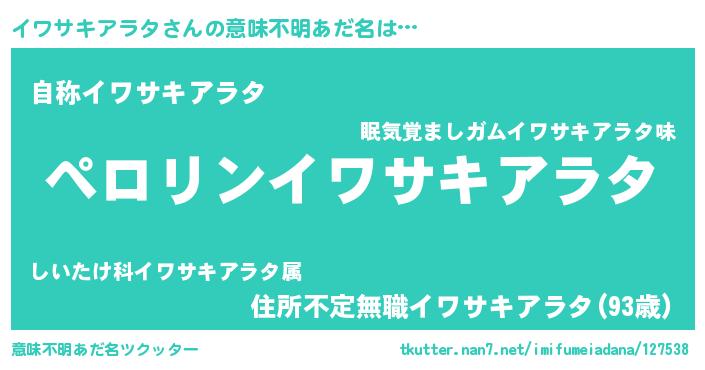 | 男性向けラノベタイトル風あだ名 | 『緋弾のイワサキアラタ』 |