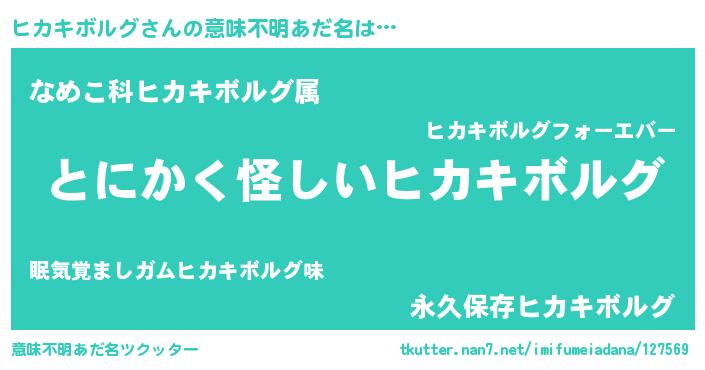 | 女子向けラノベタイトル風あだ名 | 『ヒカキボルグの卵を拾いまして』 |