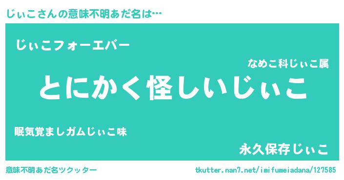 | 女子向けラノベタイトル風あだ名 | 『じぃこ様がみてる』『じぃこ伯爵の花嫁』 |