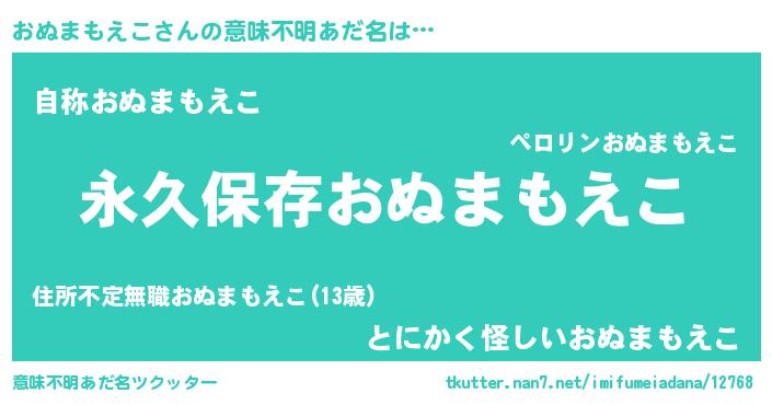 | 女子向けラノベタイトル風あだ名 | 『異世界でカフェおぬまもえこを開店しました。』 |