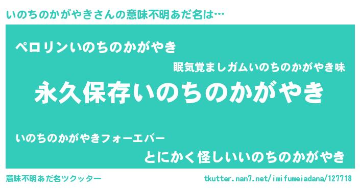 | 胡散臭い通販商品みたいなあだ名 | 『絶対に幸福をもたらす水素水…その名も「いのちのかがやき」』 |