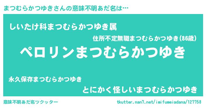 | 胡散臭い通販商品みたいなあだ名 | 『億万長者になれる霊験あらたかなお札…その名も「まつむらかつゆき」』 |