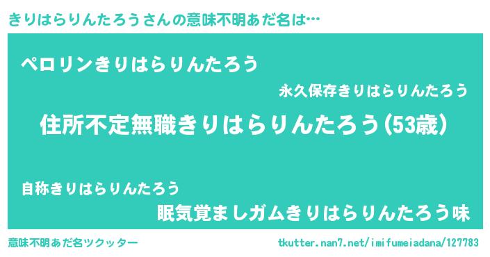 | ヘコむあだ名 | 『きりにゅー』『きりはらりんたろう(爆)』 |