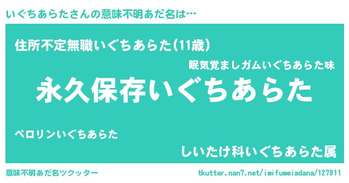 | 男性向けラノベタイトル風あだ名 | 『いぐちあらたという概念が存在しない退屈な世界 』 |