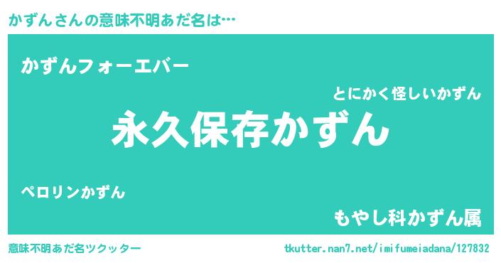 | ファンタジー風あだ名 | 『カズディッシュ』『エターナルカズンー』 |