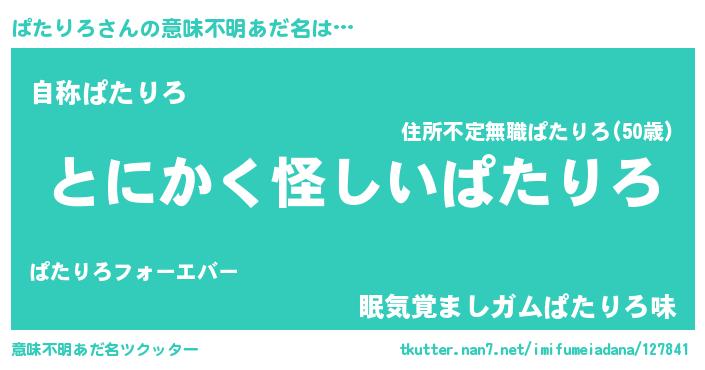 | 胡散臭い通販商品みたいなあだ名 | 『信頼と実績のペンダント…その名も「ぱたりろ」』 |