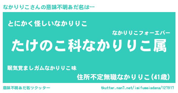 | 料理風あだ名 | 『なかりりこごはん』 |