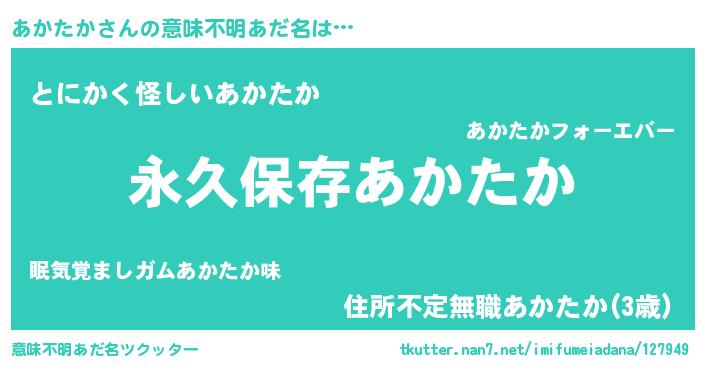 | 胡散臭い通販商品みたいなあだ名 | 『絶対に幸福をもたらす健康食品…その名も「あかたか」』 |