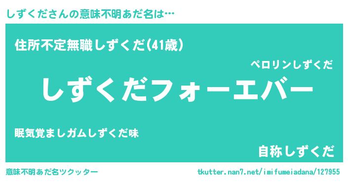 | 欧米人風あだ名 | 『しずくだ・ステッグマイヤー』 |