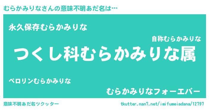 | ヘコむあだ名 | 『むらかみりな(爆)』『豆乳』 |