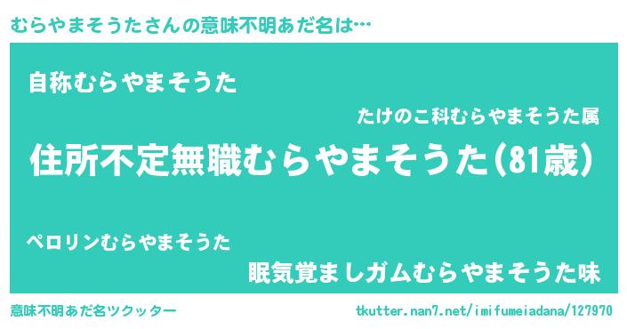 | ヘコむあだ名 | 『むらもー』『むらやまそうた(笑)』 |