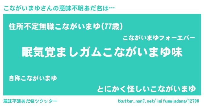 | 女子向けラノベタイトル風あだ名 | 『こながいまゆ恋絵巻』 |