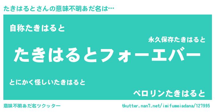 | 女子向けラノベタイトル風あだ名 | 『たきはるとの雑貨屋さん』 |