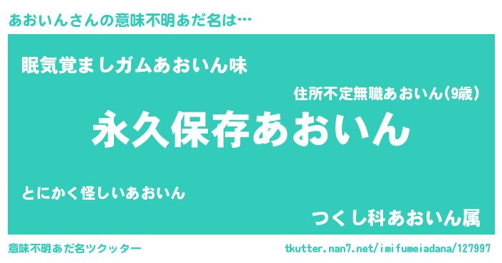 | ヒーロー風カッコイイあだ名 | 『ネオアオイン』『天空の使者あおいん』 |