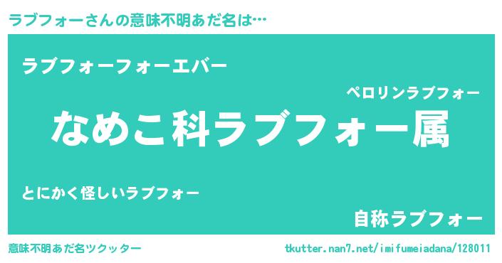 | 男性向けラノベタイトル風あだ名 | 『転生したらラブフォーだった件』 |
