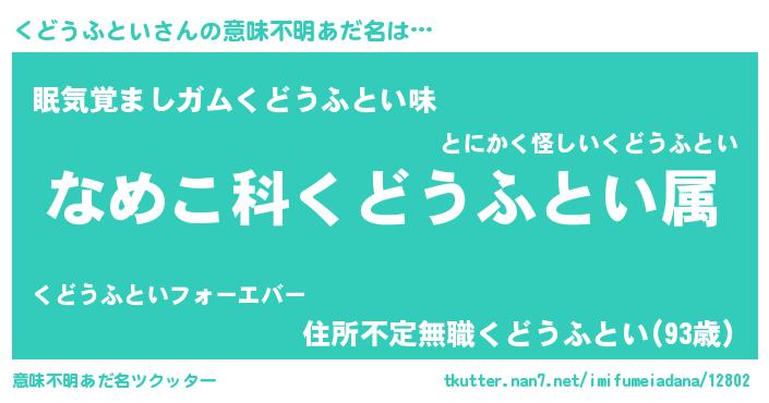 | 料理風あだ名 | 『くどうふといごはん』 |