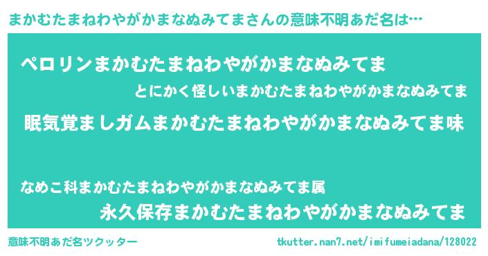 | 肩書あだ名 | 『まかむたまねわやがかまなぬみてま助教授』 |
