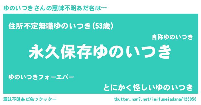 | 女子向けラノベタイトル風あだ名 | 『異世界で失敗しない100のゆのいつき』 |