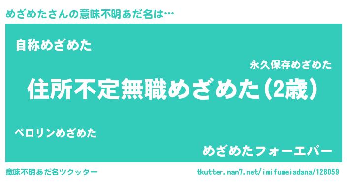 | ヒーロー風カッコイイあだ名 | 『仮面メザダー』『最強戦士メザメタ』 |