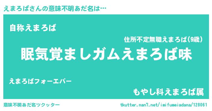 | 女子向けラノベタイトル風あだ名 | 『死神えまろばの再婚』『闇のえまろば』 |
