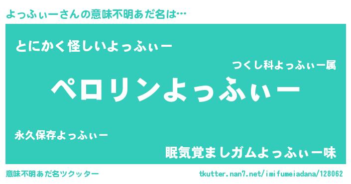 | 男性向けラノベタイトル風あだ名 | 『ヨッフィーアートオンライン』 |