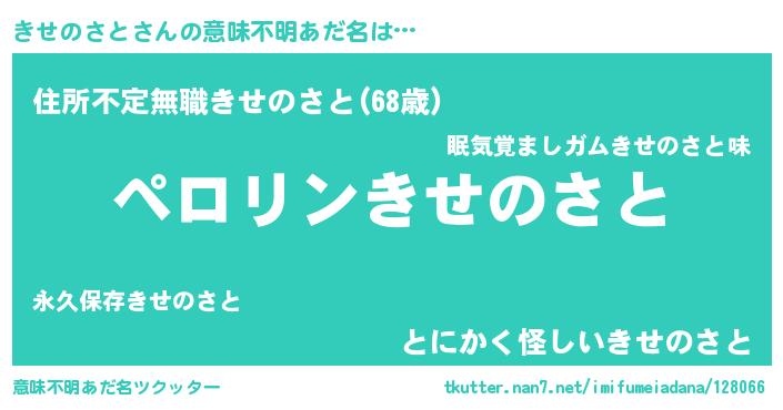 | ヘコむあだ名 | 『きせにゅー』『きせぷりん』 |