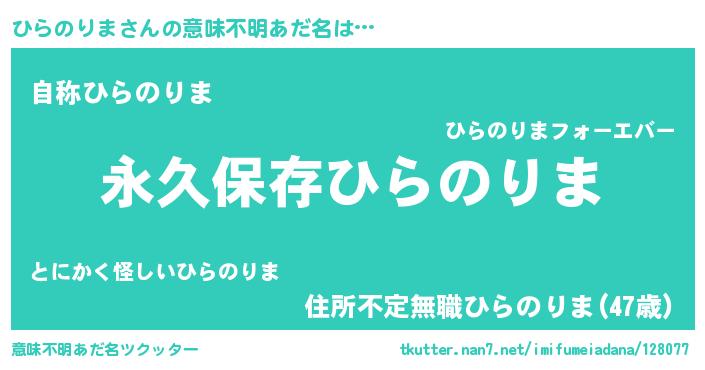 | ヒーロー風カッコイイあだ名 | 『ネオヒラノリマ』『仮面ヒラダー』 |