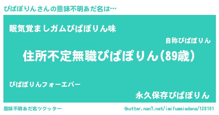 | 男性向けラノベタイトル風あだ名 | 『うちのぴぱぽりんが世界を掌握している!』 |