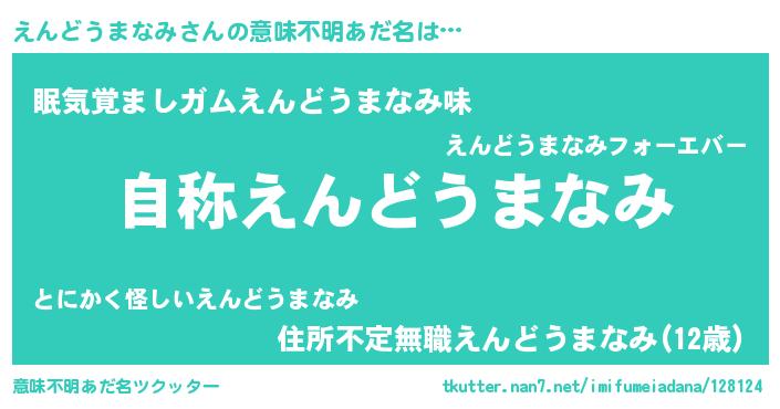 | 女子向けラノベタイトル風あだ名 | 『えんどうまなみなんてお断りですっ。』 |
