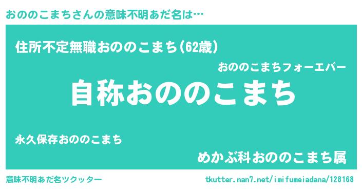 | 男性向けラノベタイトル風あだ名 | 『Re:おののこまちから始める異世界生活』 |