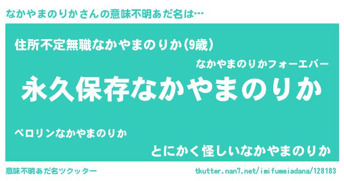 | 女子向けラノベタイトル風あだ名 | 『なかやまのりかの契約王妃』 |