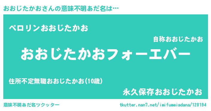 | ファンタジー風あだ名 | 『エターナルオオジタカオー』 |