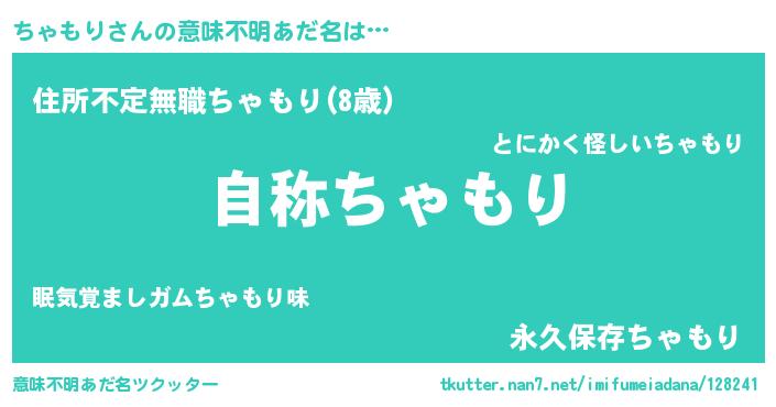 | ヘコむあだ名 | 『ちゃもり(苦笑)』『ちゃを』 |