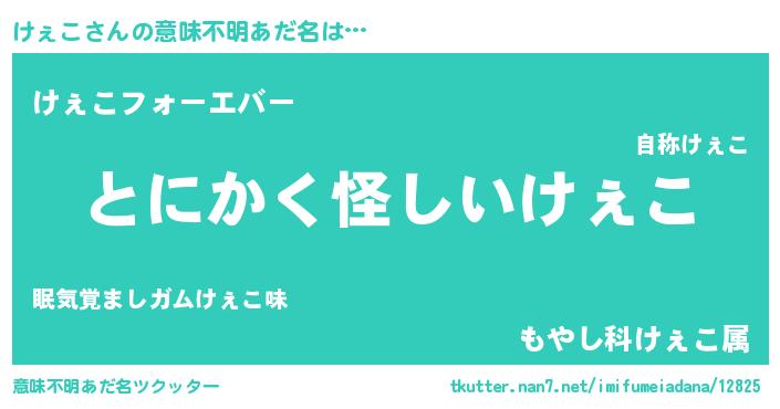 | ヒーロー風カッコイイあだ名 | 『幻影騎士ケェ』『ウルトラけぇこマン』 |