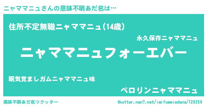 | 欧米人風あだ名 | 『ニャママニュクリステル』 |