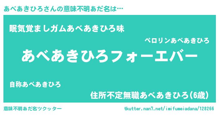 | 欧米人風あだ名 | 『あべあきひろクリステル』 |